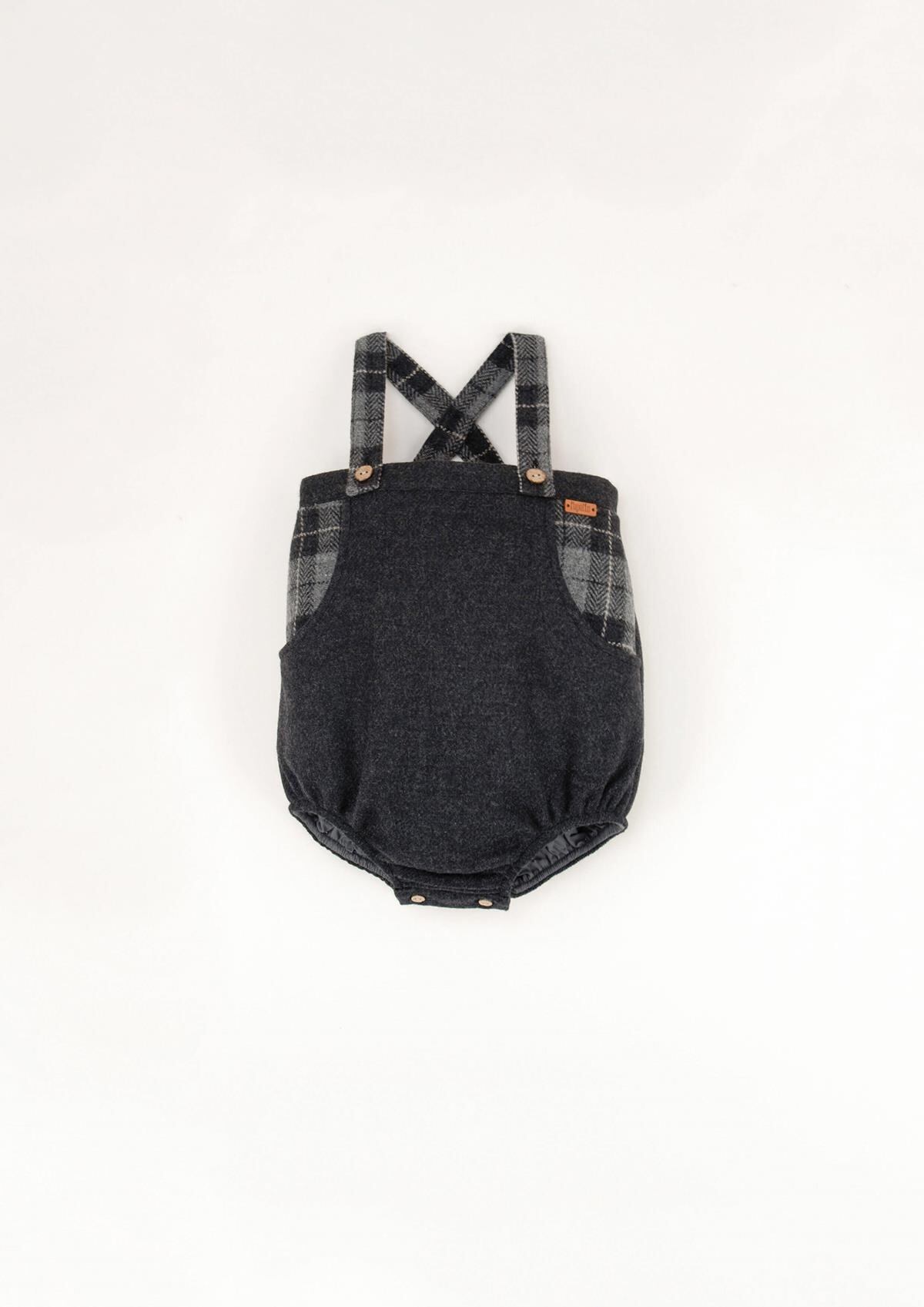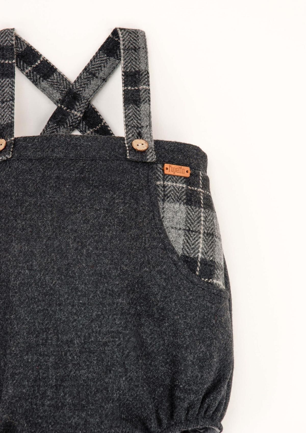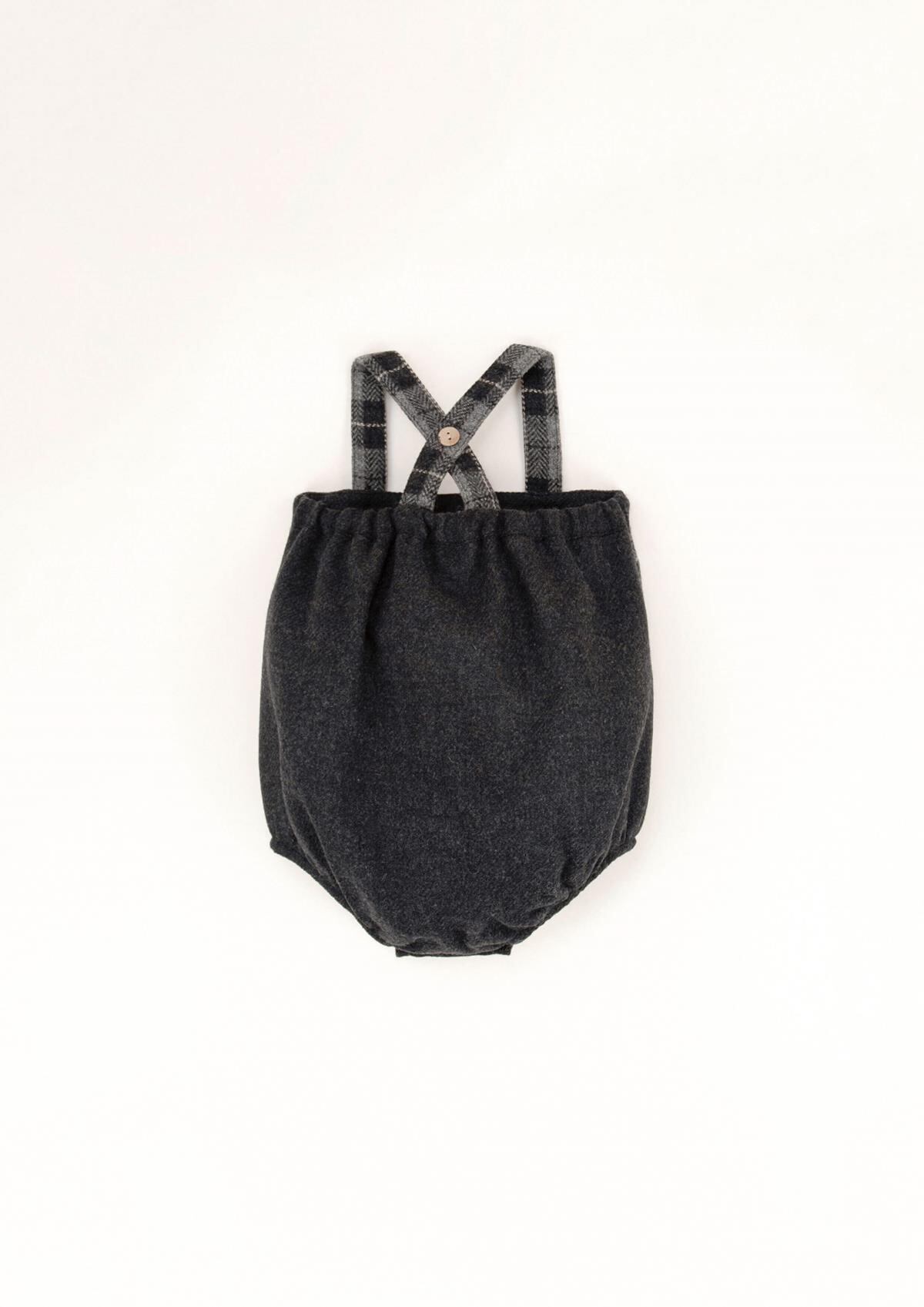 Grey woollen romper suit with bib and straps / Popelin